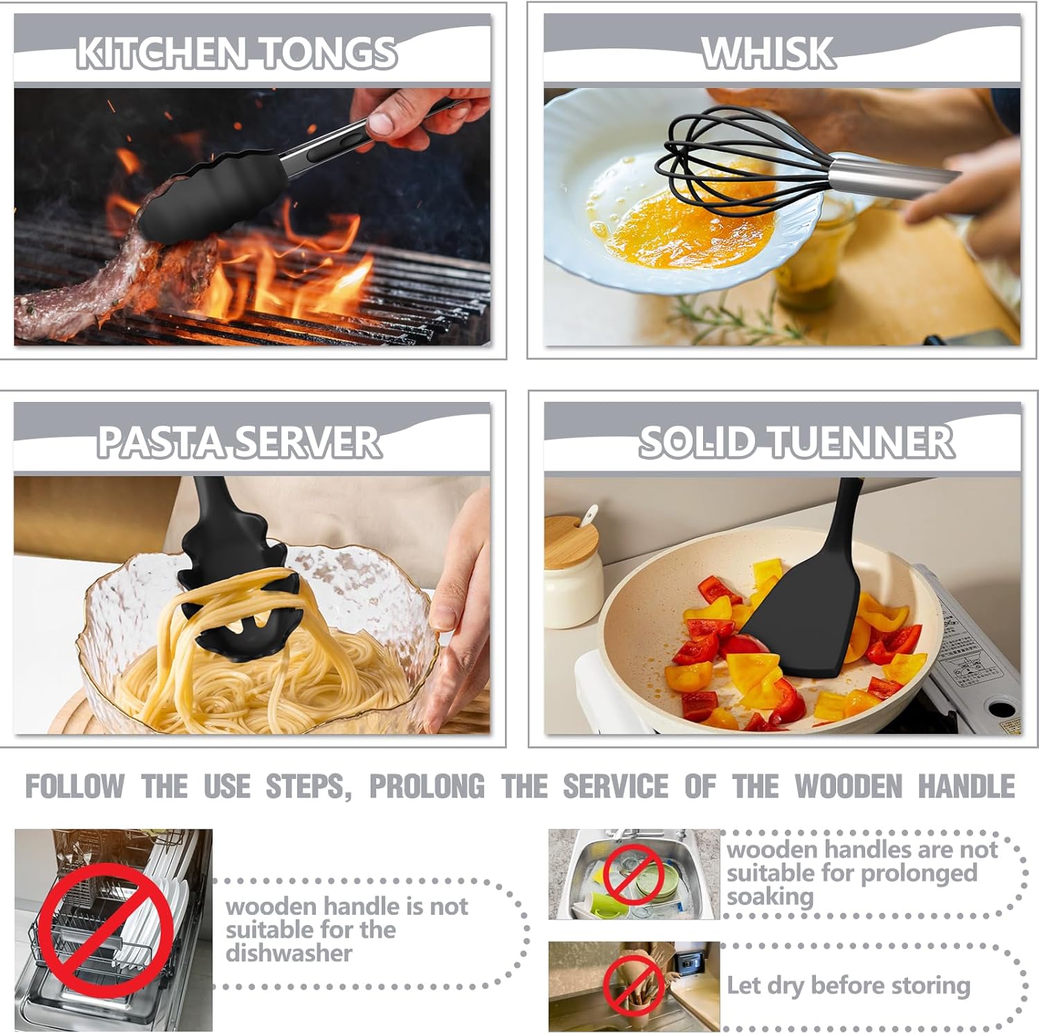 Each cooking utensil is made entirely of food-grade silicone, BPA-free and odorless