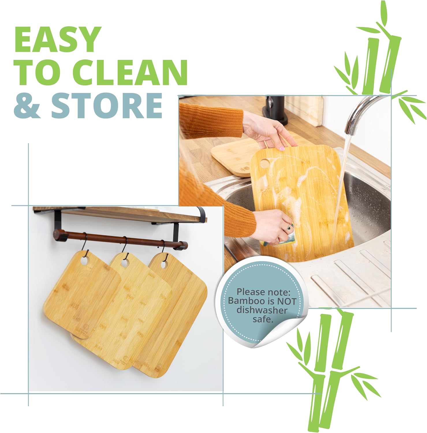 🚿 SPEND MORE TIME ENJOYING COOKING: EASY TO CLEAN: Our cutting boards can be cleaned under warm soapy water with ease. Please do not place them in the dishwasher as they don’t like it 🙂